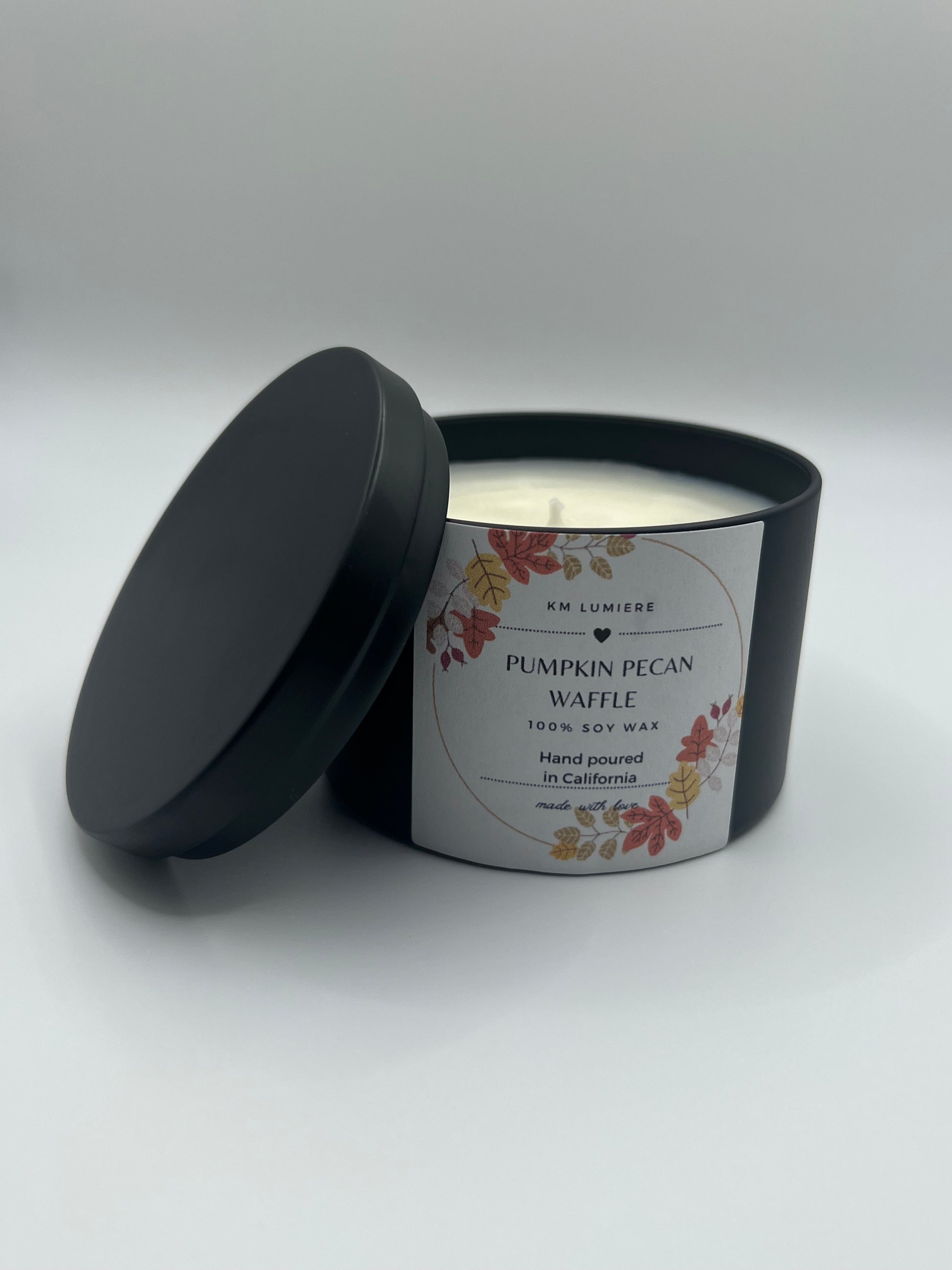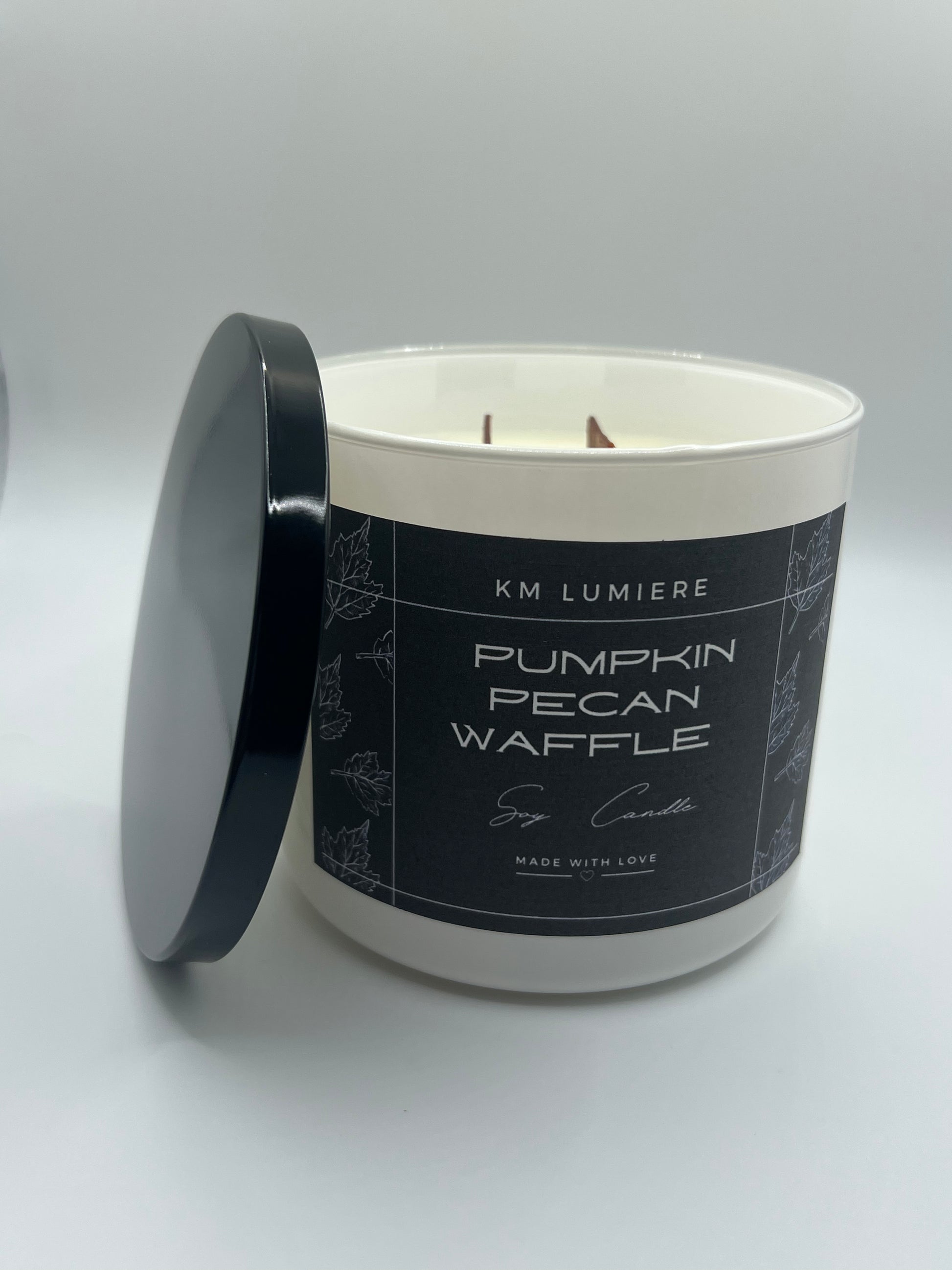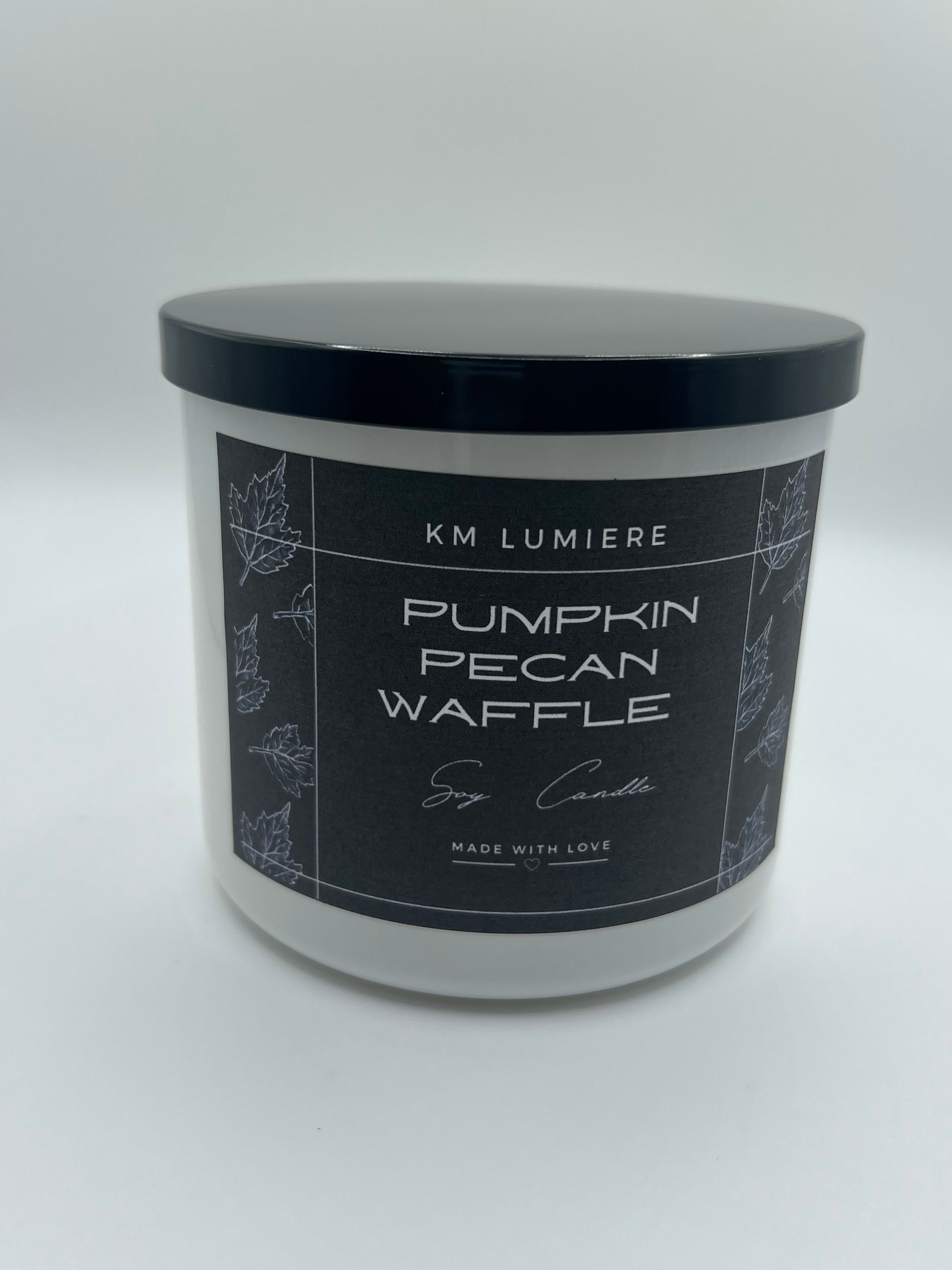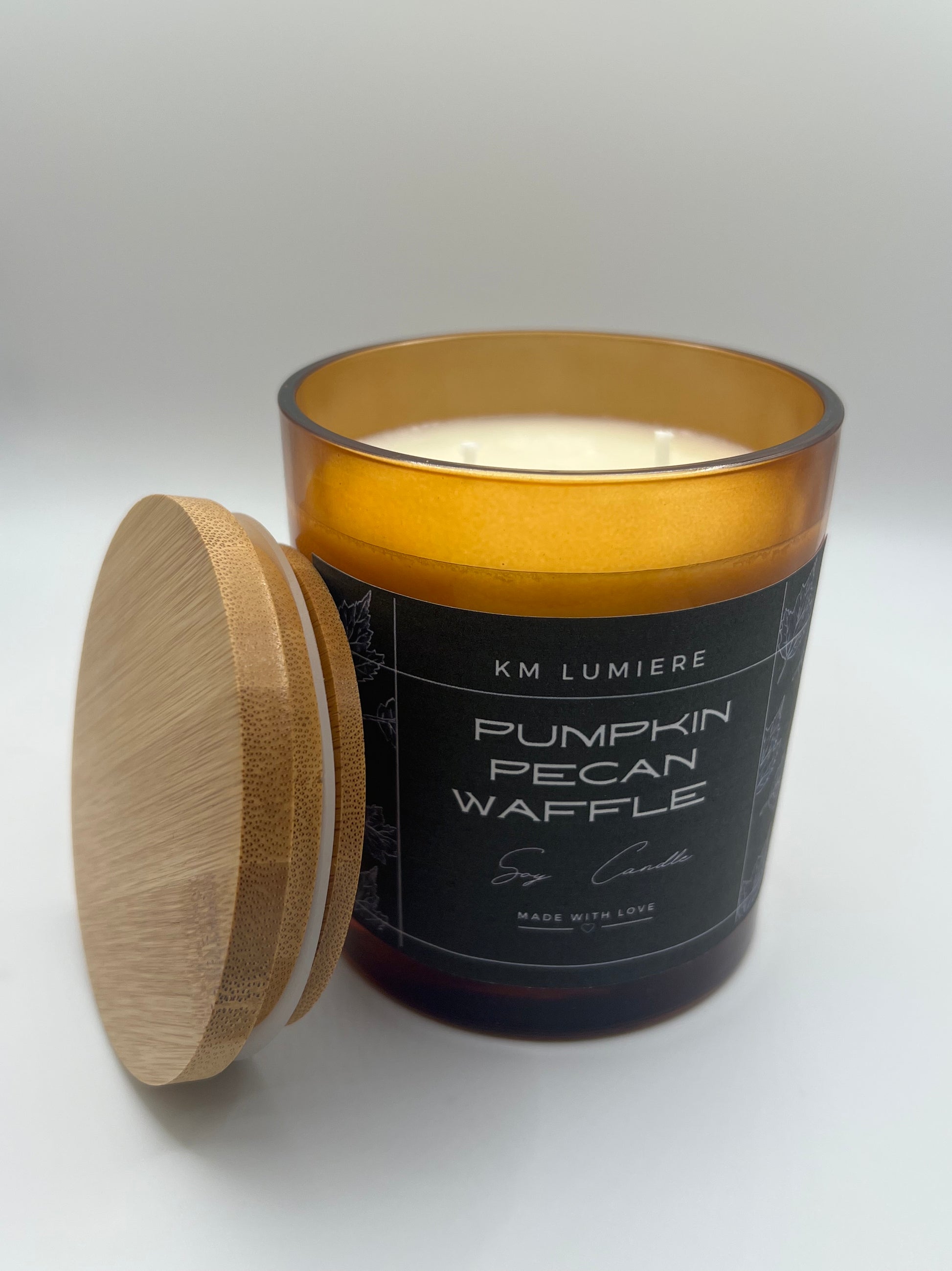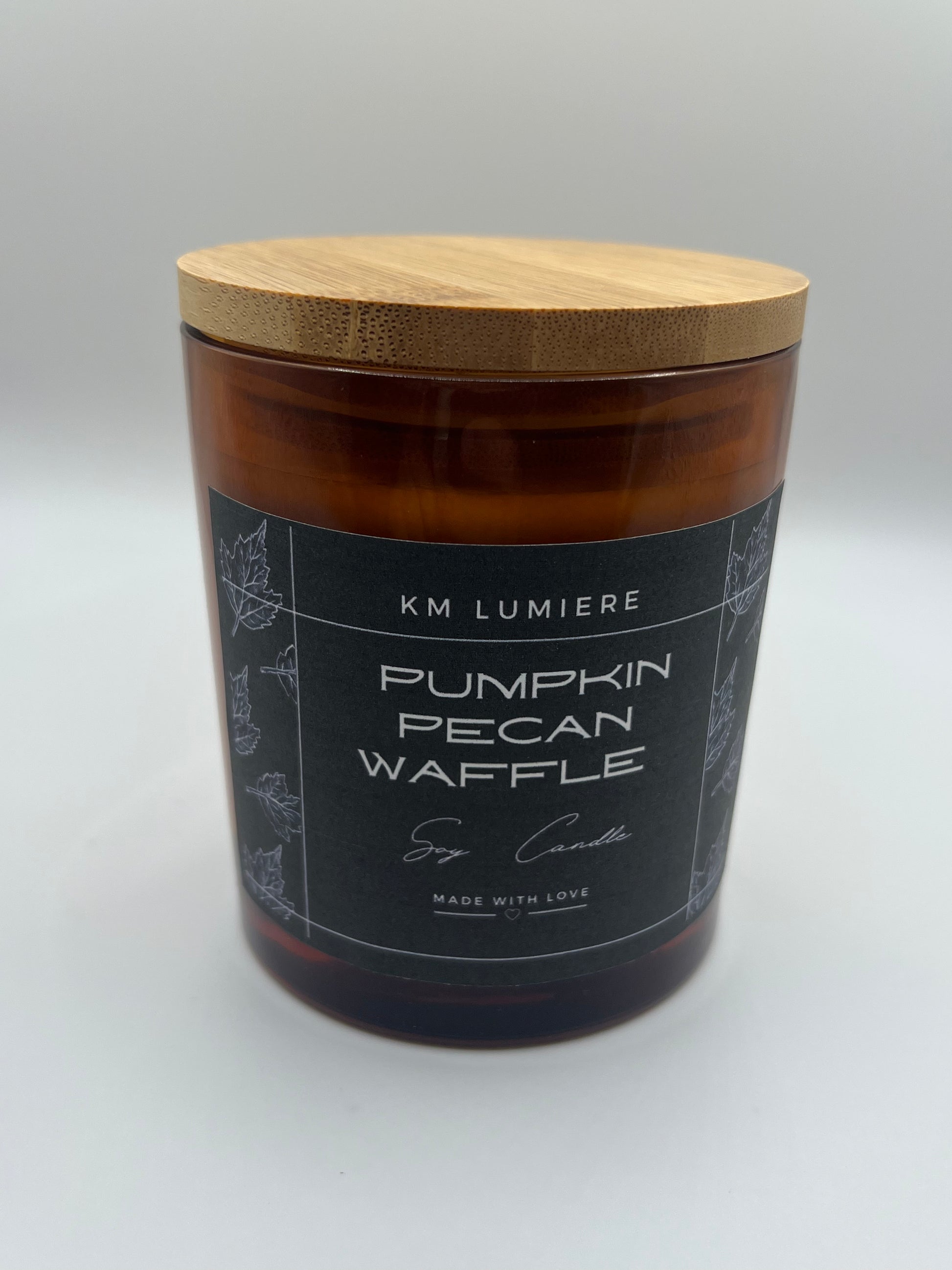 A scrumptious blend of pumpkin waffles and butter with sweet, pure maple syrup and a touch of brown sugar and pecans.